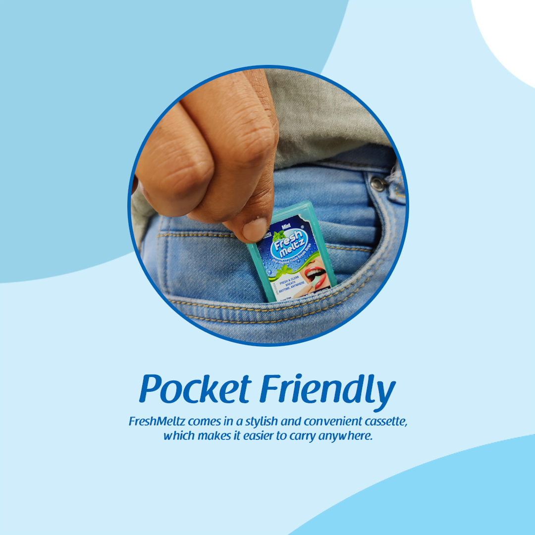 Freshmeltz is India’s first instant mouth freshener and cleanser strips. Experience instant fresh breath confidence with our uniquely formulated oral hygiene fresh-breath strips. These strips melt on your tongue instantly for quick cleansing and freshness. Freshmeltz helps you to maintain oral health and hygiene when there is little scope to run to a washroom with mouthwash or pop in a mint gum or candy.